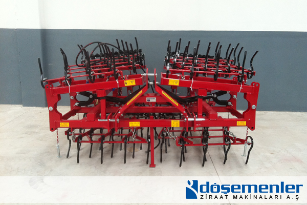 Mit dem Nivellierrad kann der Boden in der gewünschten Tiefe bearbeitet werden. Ab 19 hochzinken Grubber werden die Maschinen mit hydraulischer Öffnungs- und Schließfunktion hergestellt. 2-REIHIGE Grubber Die optional erhältliche Drehwalzengruppe ist mechanisch tiefeneinstellbar und hilft dabei, kleine Klumpen im Boden zu zerkleinern.
